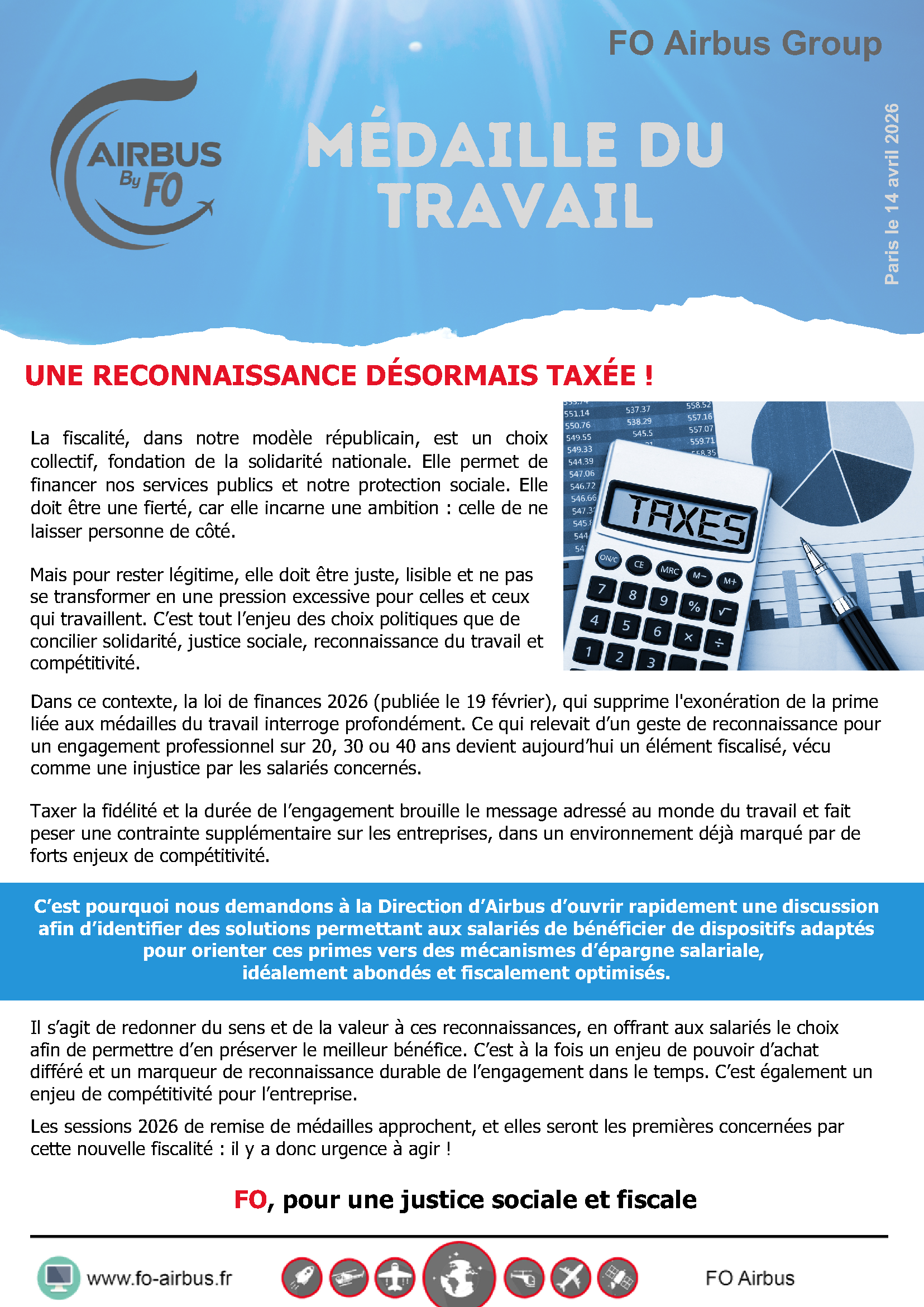 Taxes sur la médaille du travail !
