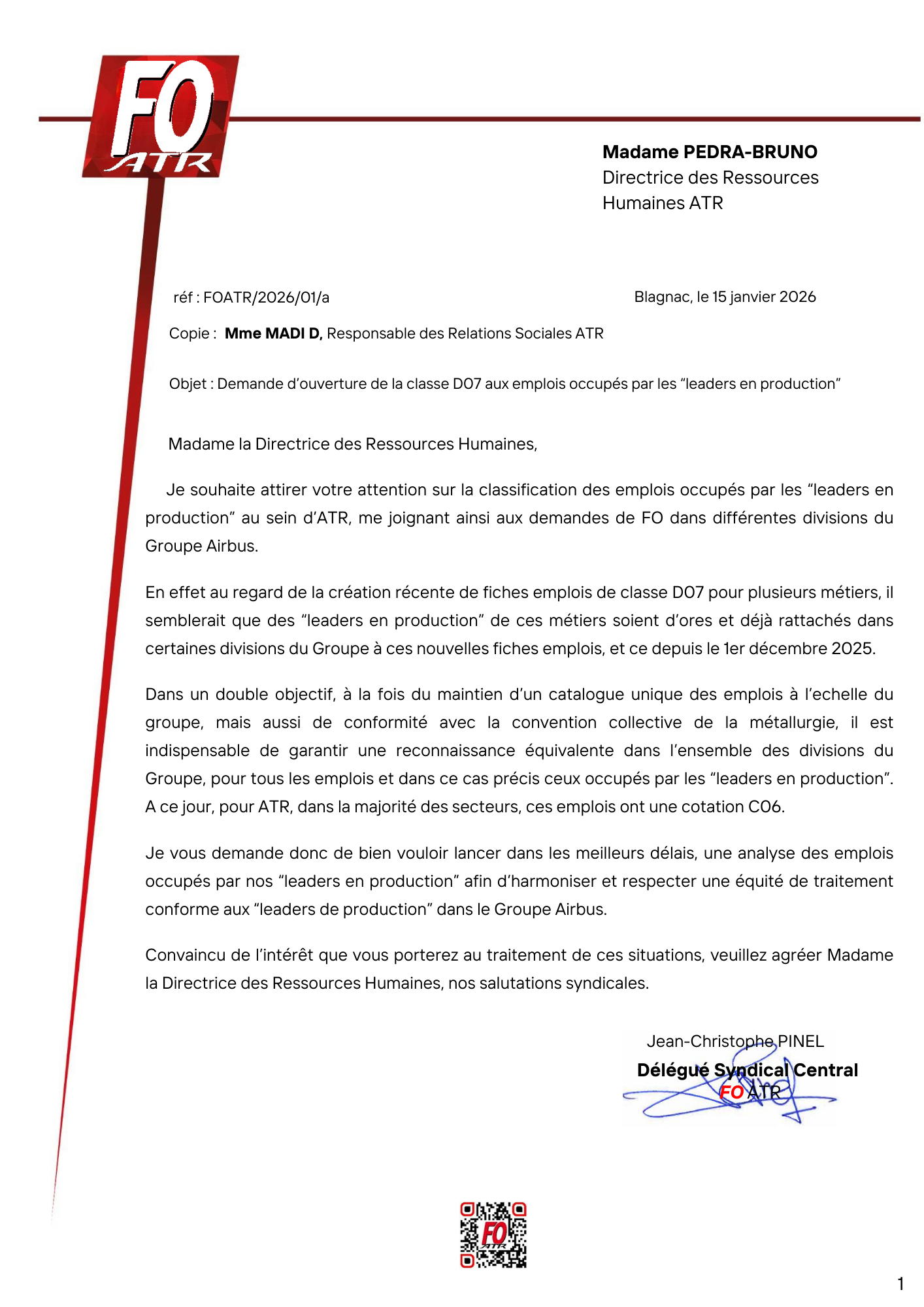 Flash inFO : Courrier à la direction d'ATR
